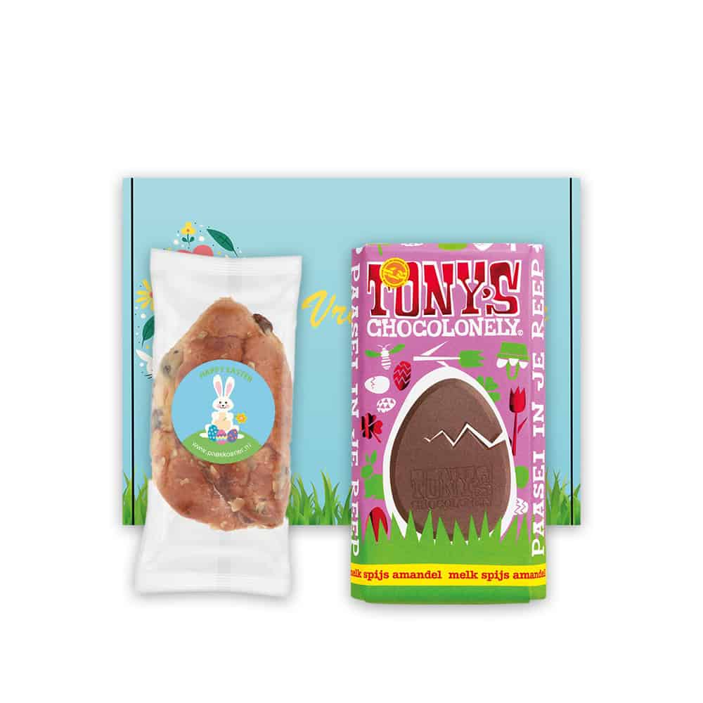 | Ingredienten van dit product: Tony’s Chocolonely paasreep melk met spijs en nootjes |